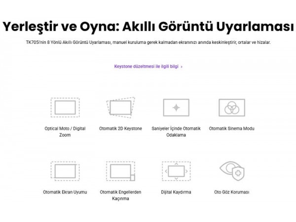 - Bilgi: TK705i; 3000 Ansi lümen, DLP, 4K UHD HDR Google TV Ev Sinema Projeksiyon, 2xHDMI, 2x8W Ses Çıkışı