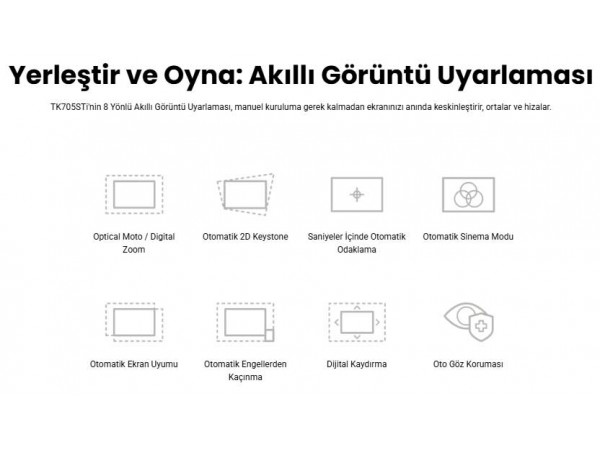- Bilgi: TK705STi; 3000 Ansi lümen, 4K UHD HDR Android Kısa Mesafe Ev Sinema, Android TV, 2xHDMI, Airplay GoogleCast