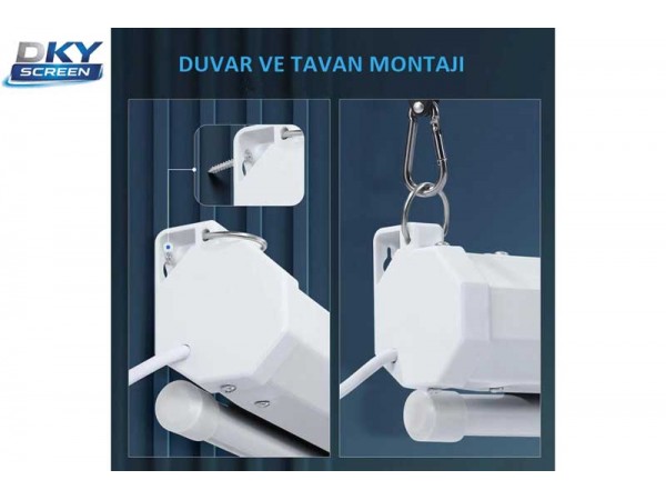 Tavana ve duvara montaj uygunluğu bulunan DkyScreen DM30 Motorlu Projeksiyon Perdesi, okullar, şirketler ve ev kullanıcıları için ekonomik bir projeksiyon yansıtma çözümü sunar.