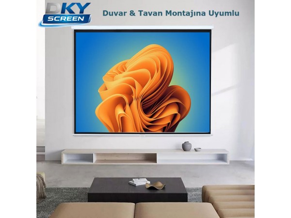 Tavana ve duvara montaj uygunluğu bulunan DkyScreen DS18 Storlu Projeksiyon Perdesi, okullar, şirketler ve ev kullanıcıları için ekonomik bir projeksiyon yansıtma çözümü sunar.