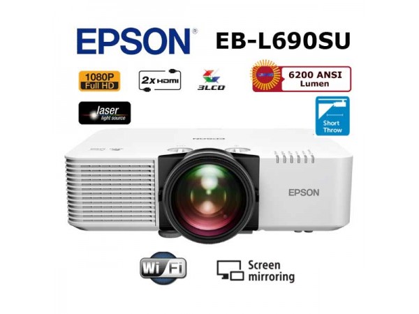 - Bilgi: EB-L690SU Lazer Projeksiyon, Kısa Mesafe Yansıtma, Full HD 1920x1200, Wi-Fi, Miracast, Airplay Kablosuz, 6200 Lümen, 2xHDMI