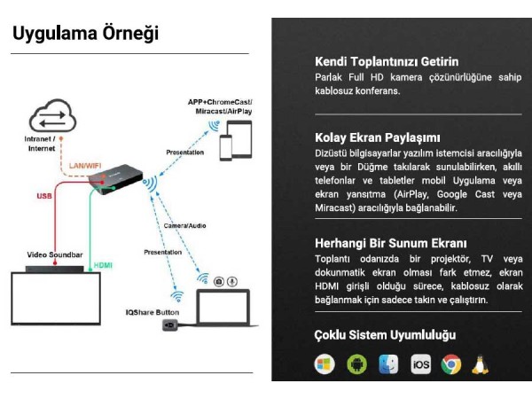 - Bilgi: WP40: Ultra HD 4K Kablosuz Görüntü Aktarım Cihazı. HDMI, USB, Network, 2 Adet USB-C Buton ile gelir