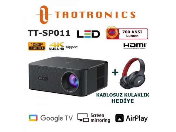 - Bilgi: TT-SP011, LED Smart Google TV, 700 ANSI Lumen Projeksiyon + TaoTronics TT-BH1121-RED Kablosuz Kulak Üstü Kulaklık Hediyeli